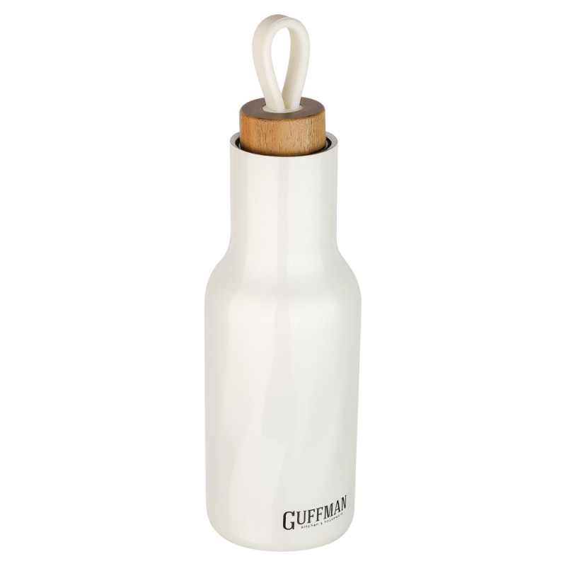 Цельнометаллический корпус из нержавеющей стали 18/10. Двойные стенки корпуса позволяют напитку долго оставаться горячим, внешние стенки при этом остаются холодными. Герметичная крышка состоит на 50% из дерева (внешняя часть) и на 50% из пластика с силиконовой вставкой, что обеспечивает сохранность температуры внутри: горячие напитки до 6-8 часов, холодные до 8-10 часов. Оригинальная форма термоса. Силиконовая петля на крышке делает использование более удобным.