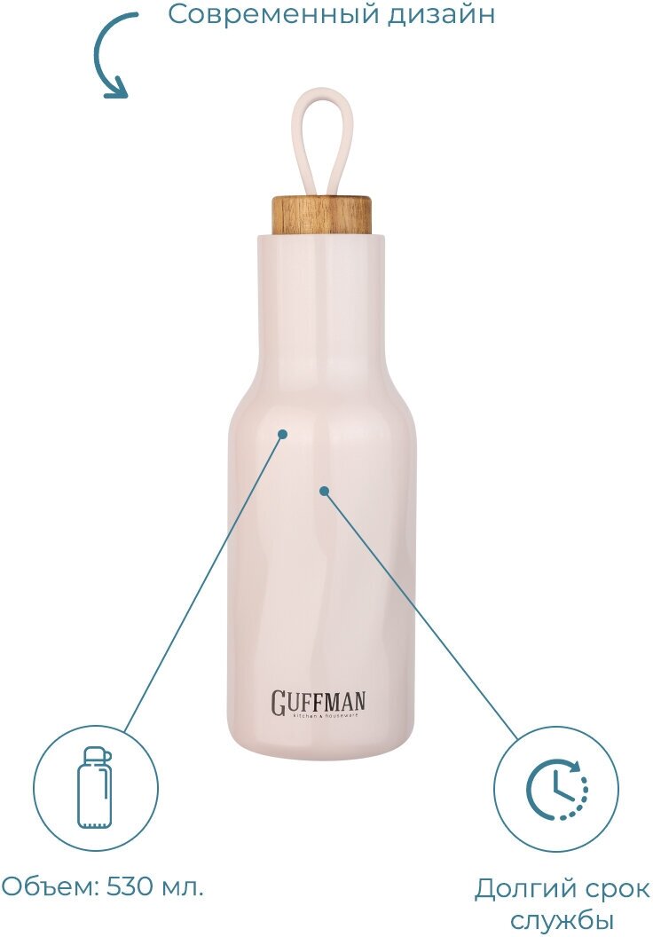 Цельнометаллический корпус из нержавеющей стали 18/10. Двойные стенки корпуса позволяют напитку долго оставаться горячим, внешние стенки при этом остаются холодными. Герметичная крышка состоит на 50% из дерева (внешняя часть) и на 50% из пластика с силиконовой вставкой, что обеспечивает сохранность температуры внутри: горячие напитки до 6-8 часов, холодные до 8-10 часов. Оригинальная форма термоса. Силиконовая петля на крышке делает использование более удобным.