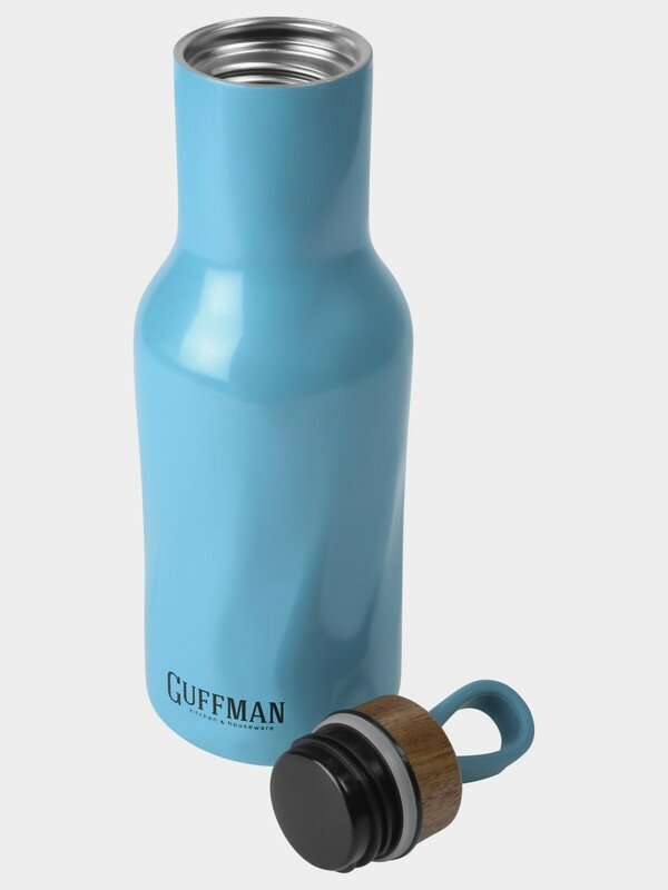Цельнометаллический корпус из нержавеющей стали 18/10. Двойные стенки корпуса позволяют напитку долго оставаться горячим, внешние стенки при этом остаются холодными. Герметичная крышка состоит на 50% из дерева (внешняя часть) и на 50% из пластика с силиконовой вставкой, что обеспечивает сохранность температуры внутри: горячие напитки до 6-8 часов, холодные до 8-10 часов. Оригинальная форма термоса. Силиконовая петля на крышке делает использование более удобным.