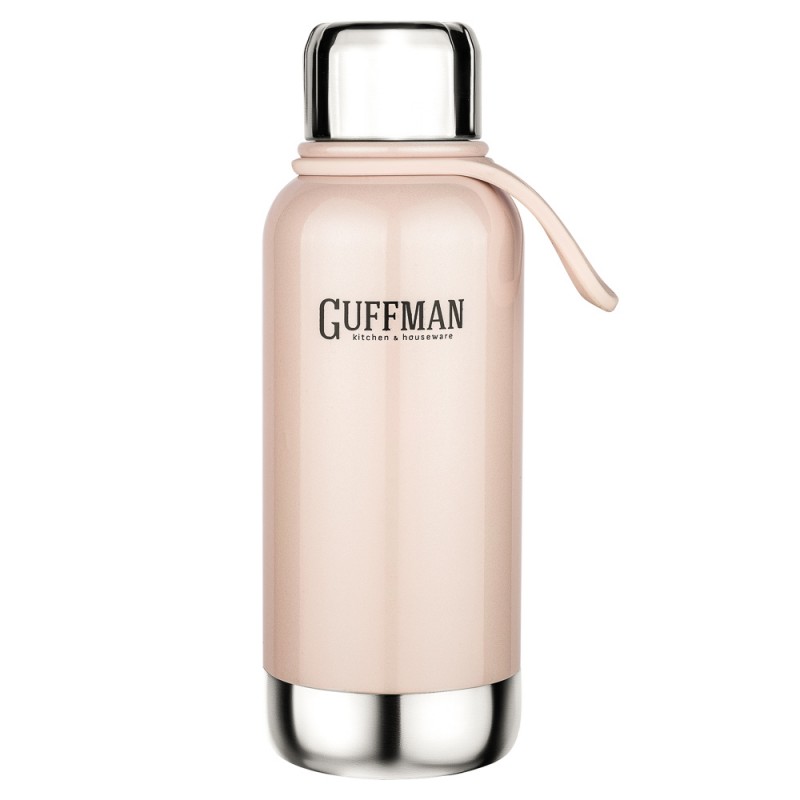 Цельнометалический однослойный корпус из нержавеющей стали 18/10. Герметичный колпачок обеспечивает сохранение вкусовых свойств. За счет однослойных стенок термос имеет большую вместительность. Не рекомендуется для горячих напитков. Удобный силиконовый держатель - петля.