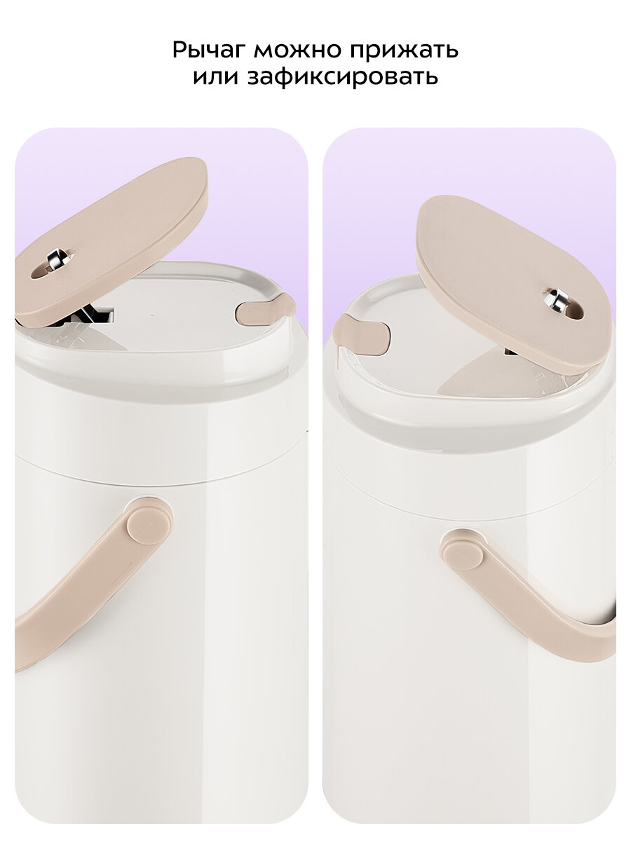 В крышке термоса находится помпа. При нажатии на помпу с помощью рычага создаётся избыточное давление воздуха внутри колбы, которое выталкивает жидкость в трубку, а затем в носик. Рычаг в крышке может находиться в двух положениях: прижат/в положении 45°.