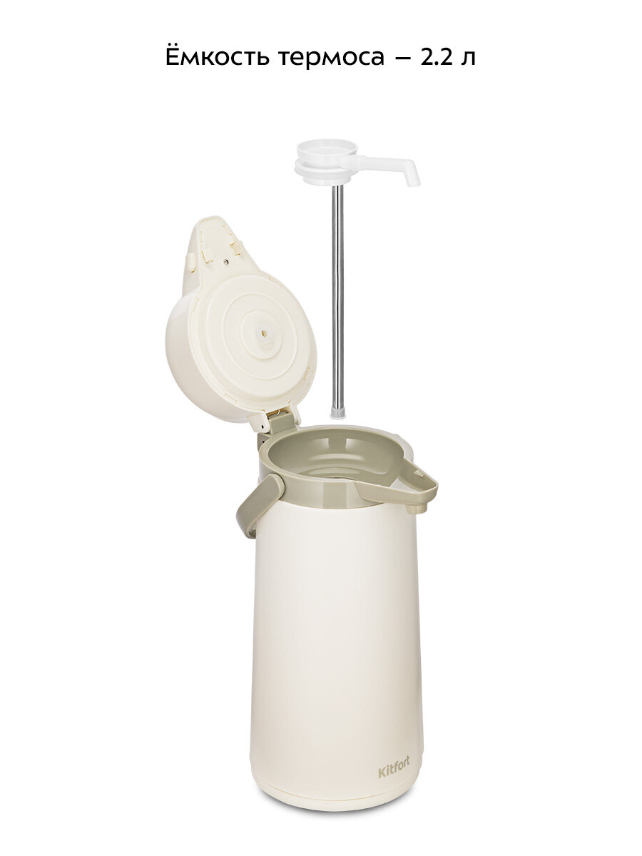Термос КТ-1260 – идеальный выбор для переноски горячих и холодных напитков. Он станет незаменимым спутником в длительных поездках, походах, на прогулках и в повседневной жизни. Объём термоса – 2,2 л.
