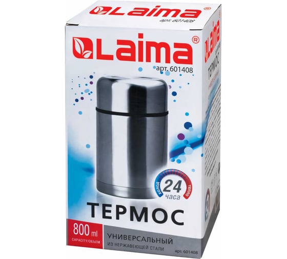 Термос LAIMA универсальный с широким горлом предназначен для хранения напитков, первых и вторых блюд.