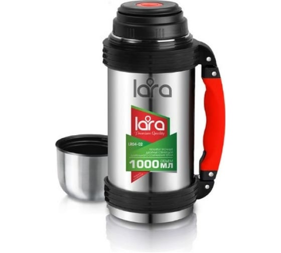 Термос Lara 1л., ручка, кнопка, ремешок, двойные стенки, крышка-стаканчик, нерж сталь LR04-02 - походный вариант для сохранения температуры напитков.