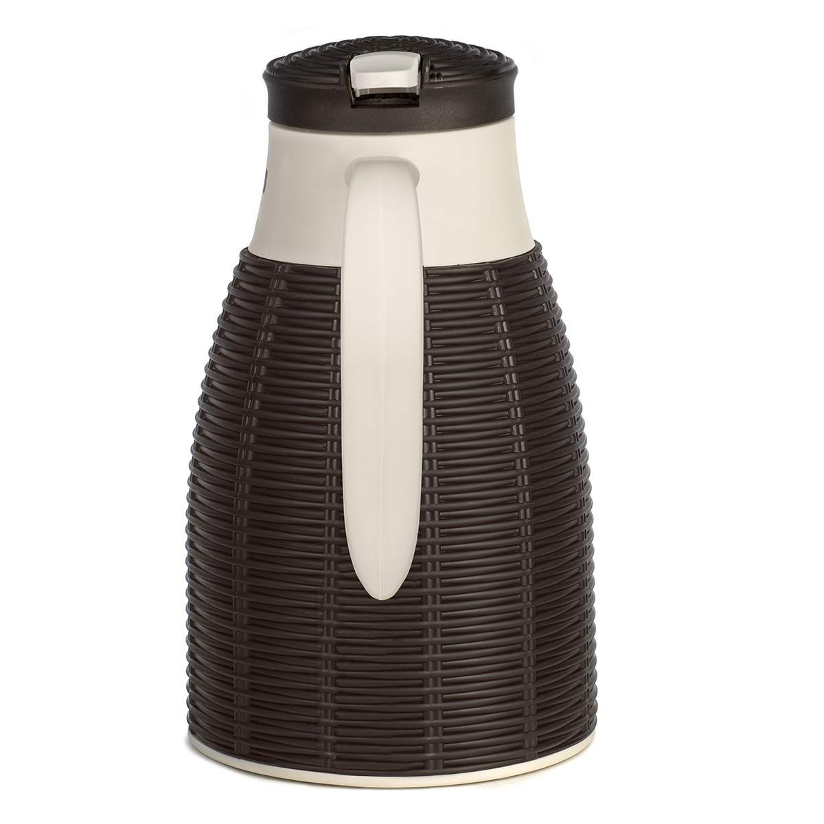 Термос со стеклянной колбой LARA LR04-80 в стилизованном под ротанг корпусе создает теплую и уютную атмосферу. Стекло не впитывает запахи и легко моется. Термоизоляционные свойства стекла вкупе с двойными стенками и зеркальным напылением увеличивают срок сохранения температуры. Элегантная открытая ручка внесет в дизайн современную нотку, как и практичная крышка-клапан: для подачи напитка достаточно нажать на рычаг, расположенный на крышке термоса. Термос со стеклянной колбой и двойными стенками LARA LR04-80 доступен в трех цветовых решениях: универсальном сером, оригинальном коричневом и строгом черном.