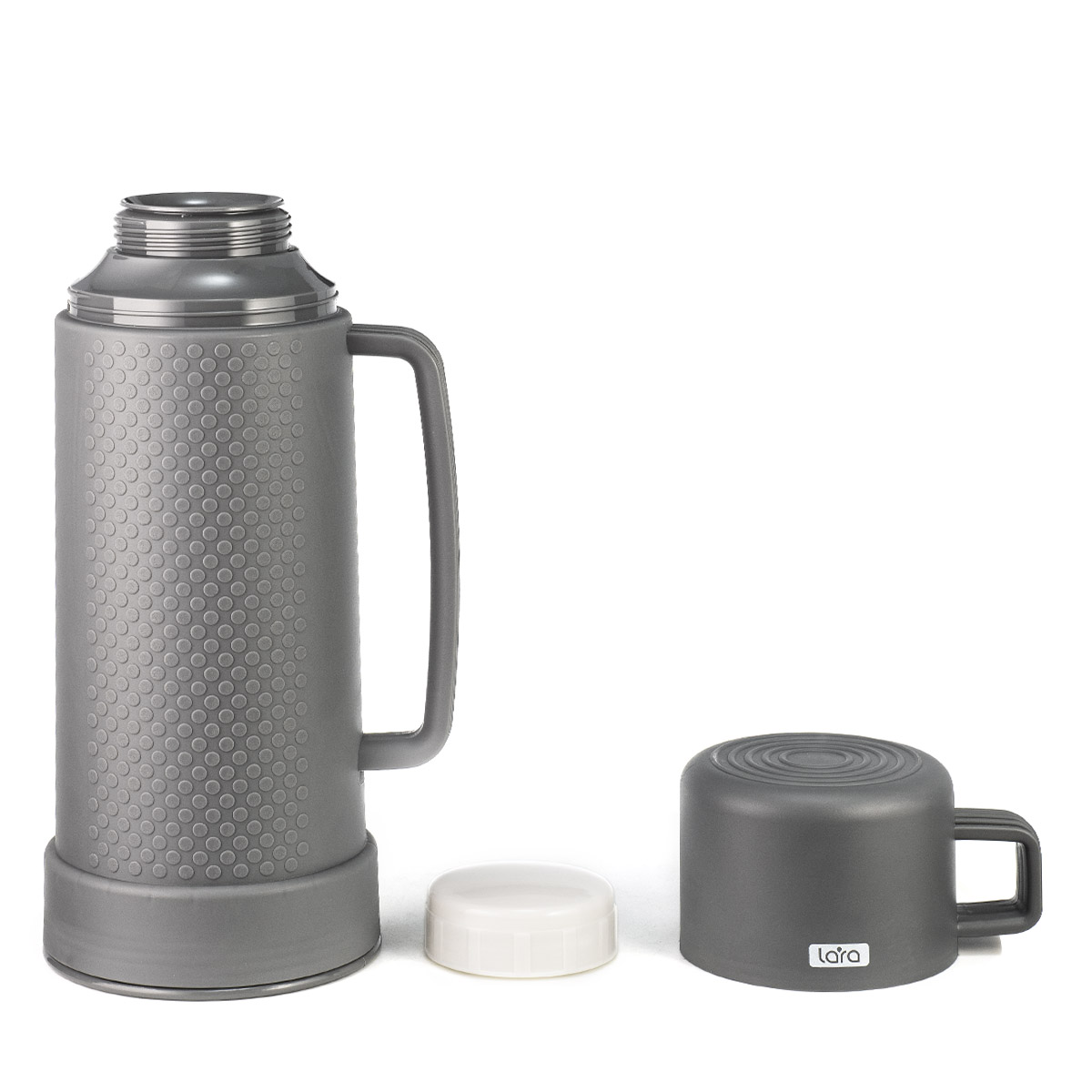Эргономичный термос LARA с двойными стенками для длительного поддержания температуры. Колба изготовлена из стекла с зеркальным покрытием, корпус выполнен из полипропилена. Стеклянные термосы славятся своими свойствами – этот материал не впитывает запахи и вкусы, легко очищается. Стекло обладает на 30 % меньшей теплопроводностью, чем металл, поэтому настолько же дольше сохраняет температуру. Термос имеет не просто крышку-кружку, а кружку с ручкой, что выгодно отличает его от других моделей. Горлышко закупоривается завинчивающейся пробкой с клапаном.