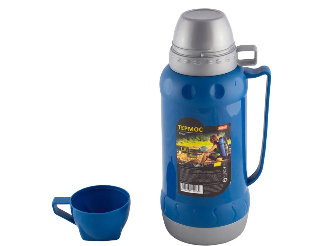 Термос со стеклянной колбой в пластиковом корпусе