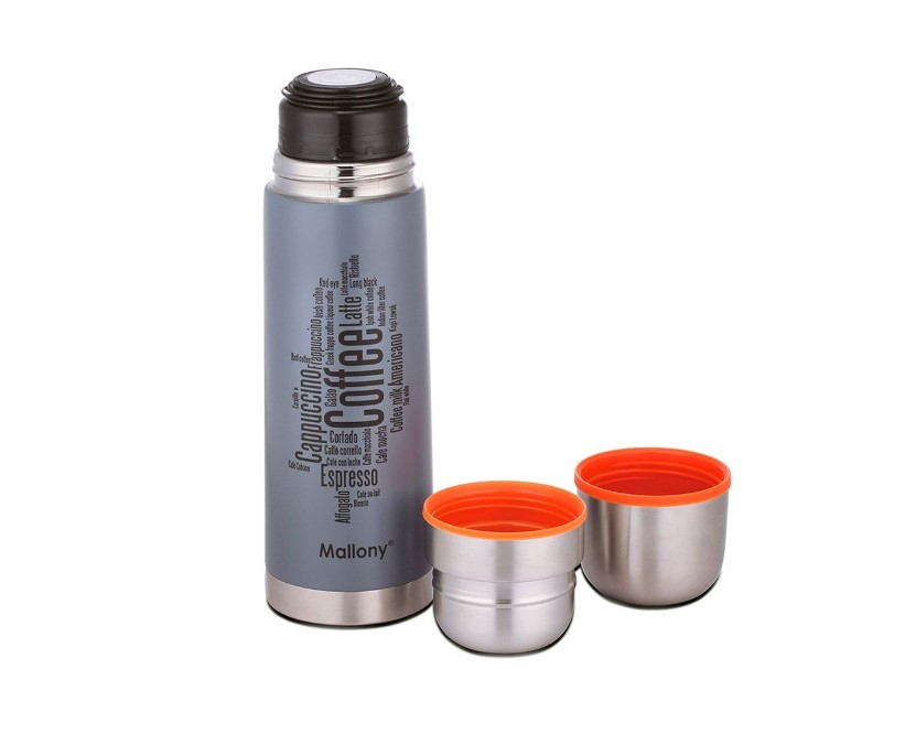 . Укомплектован пробкой с кнопкой. Такая пробка удобна в использовании и позволяет, не отвинчивая ее, наливать напитки после простого нажатия. Термос оснащен крышкой-чашкой.. Упаковка: цветная коробка