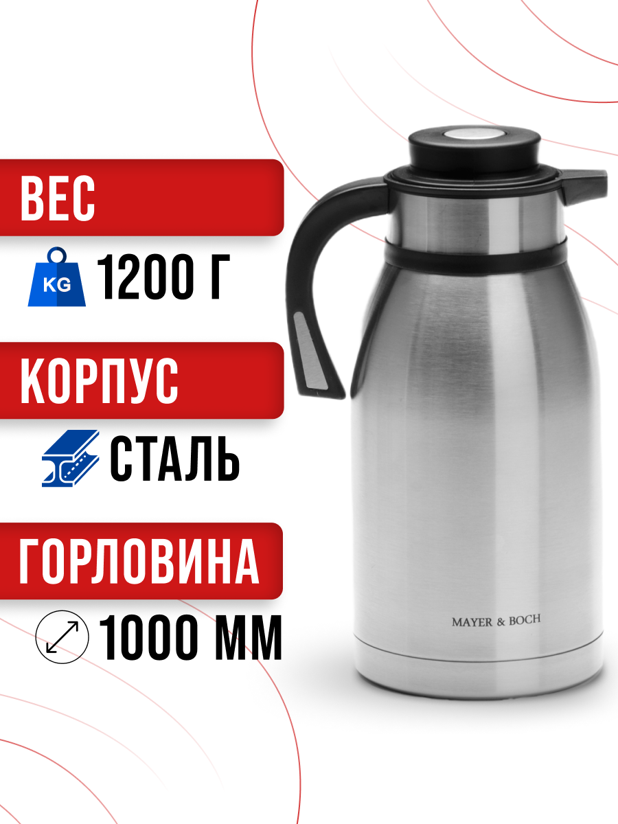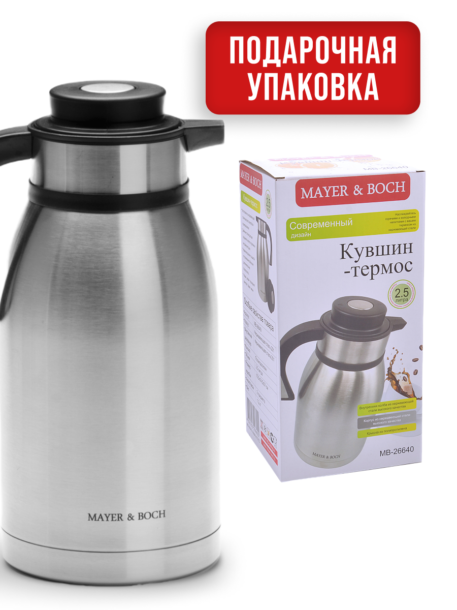 Термос 2,5 л mayer boch 26640 MAYER&BOCH 26640 Термос нерж. 2,5 л мет/колбаMB (х12) выполнен из качественной нержавеющей стали, которая не вступает в реакцию с содержимым и не изменяет вкусовых качеств напитка.