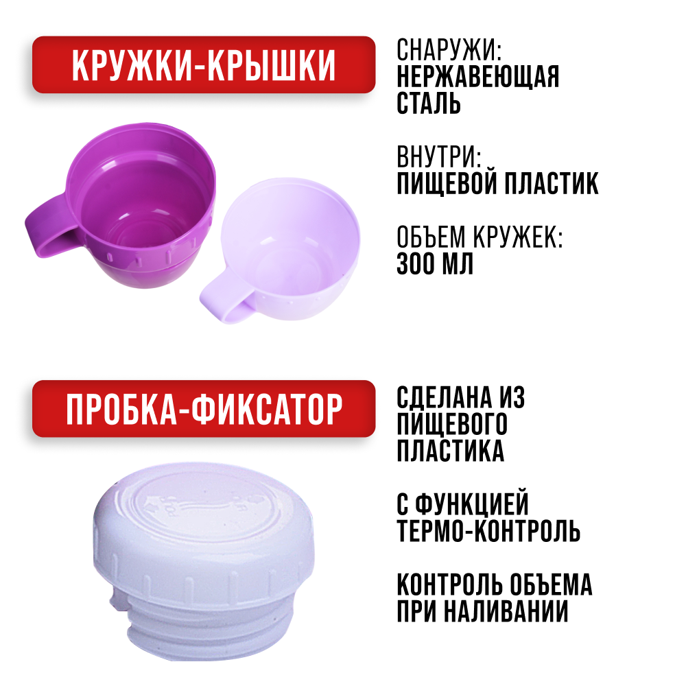 Комплектация: термос - 1 шт, крышка-чашка - 2 шт.
