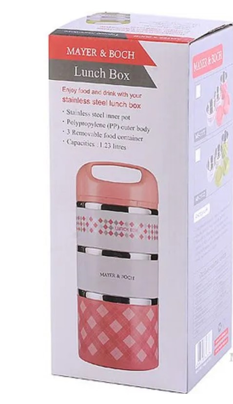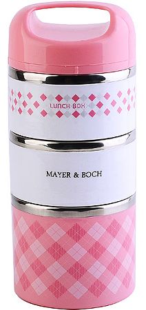 Бренд - Mayer&Boch / Майер Энд БошСтрана - КИТАЙМатериал - Вес - 0.55 кгТермос пищевой, 3 секции, розовый MB арт. SG-31120Герметичный контейнер термос с крышкой предназначен для хранения готовых блюд. Ланч бокс имеет 3 независимых секции. Стенки секций изготовлены из нержавеющей стали. Нержавеющая сталь позволяет дольше удерживать тепло продуктов. Каждая секция закрывается при помощи резьбы с уплотнительным кольцом, которое предотвращает протекание. В крышке под ручкой имеется дополнительное пространство, в которое можно положить пакетик с солью и специями. Корпус контейнера изготовлен из полипропилена, благодаря чему его можно мыть в посудомоечной машине. Нельзя использовать в микроволновой печи. Удобный, компактный, на при этом вместительный термос станет вашем незаменимым помощником в путешествиях, на отдыхе с детьми.