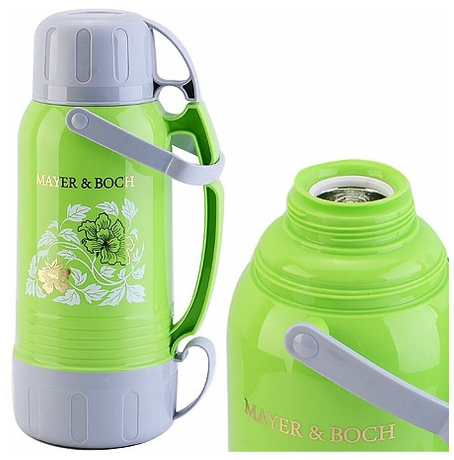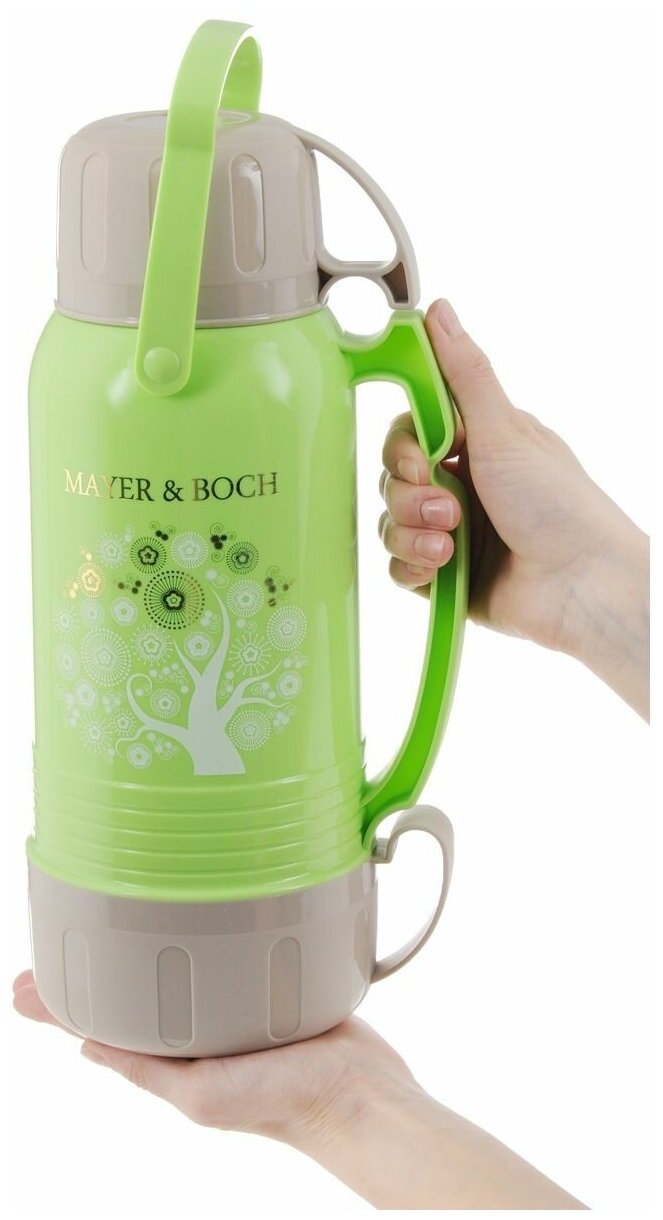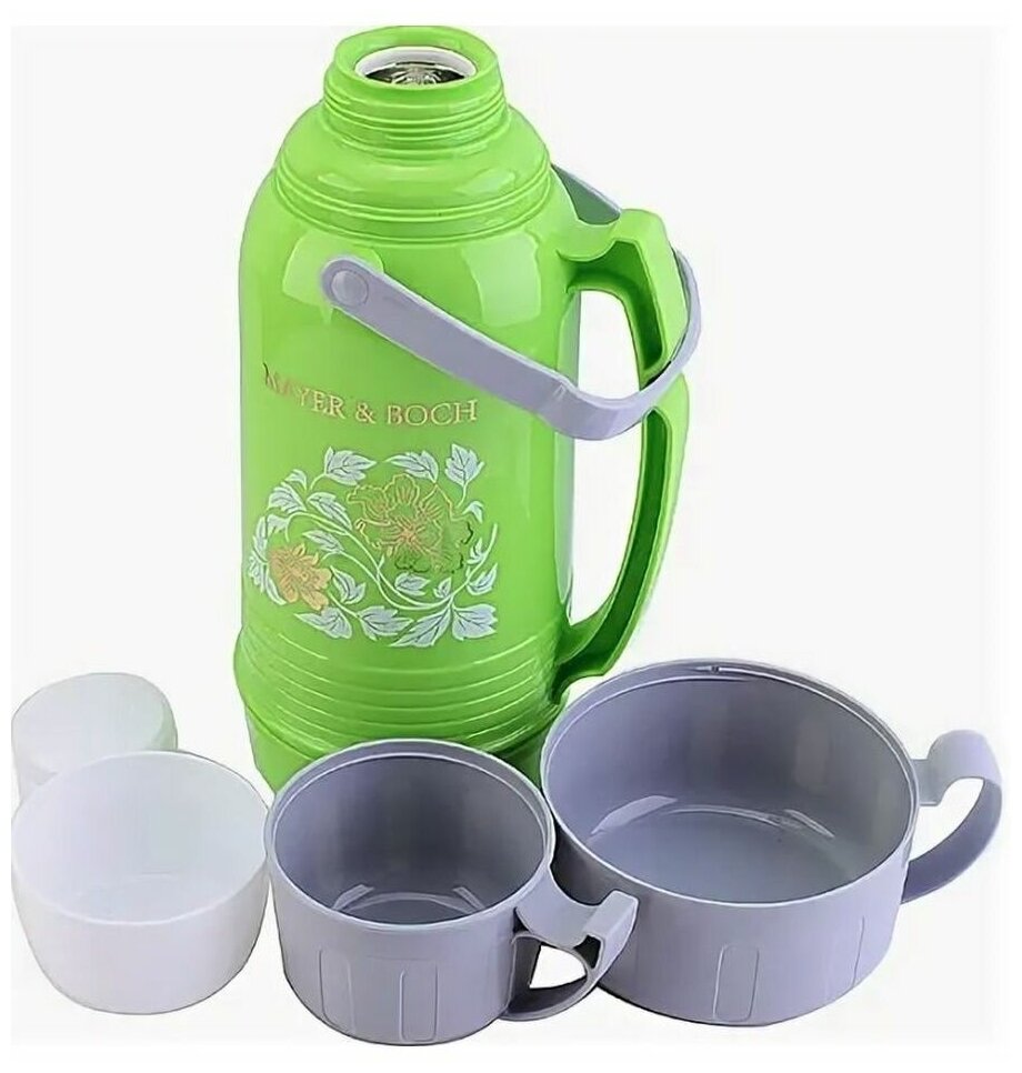 Термос MAYER&BOCH с цветным пластиковым корпусом и стеклянной внутренней колбой, является самым востребованным среди покупателей. По своим теплообменным характеристикам термос со стеклянной колбой не уступает термосам со стальными колбами, но благодаря свойствам стекла, в него можно наливать напитки с сильными, устойчивыми ароматами. Термос оснащен двумя удобными ручками, одна из которых предназначена для его переноски. Завинчивающаяся герметичная крышка предохраняет от проливаний. В комплекте с термосом идут 3 пластиковые кружки. Термос способен сохранять необходимую температуру до 24-х часов. Легко и просто моется. Термос MAYER&BOCH пригодится в любой ситуации: будь то поход, поездка или просто чаепитие.