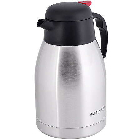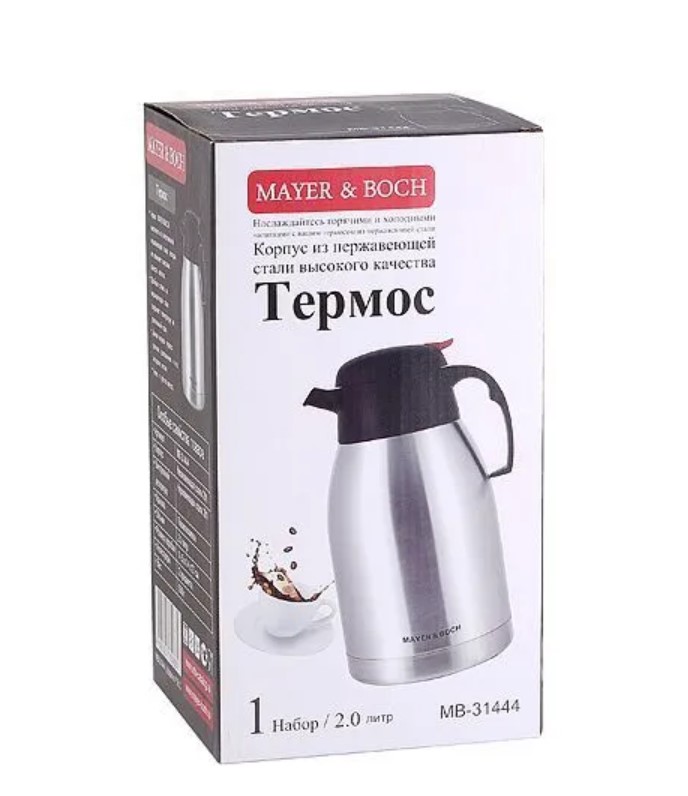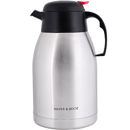 Термос MAYER&BOCH выполнен из качественной нержавеющей стали, которая не вступает в реакцию с содержимым термоса и не изменяет вкусовых качеств напитка. Двойная стенка из нержавеющей стали сохраняет температуру на более длительный срок. Вакуумный закручивающийся клапан предохраняет от проливаний, а удобная кнопка-дозатор избавит от необходимости каждый раз откручивать крышку. Данная модель термоса прочная, долговечная и в тоже время легкая. Стильный металлический термос понравится абсолютно всем и впишется в любой интерьер кухни. Легко и просто моется.