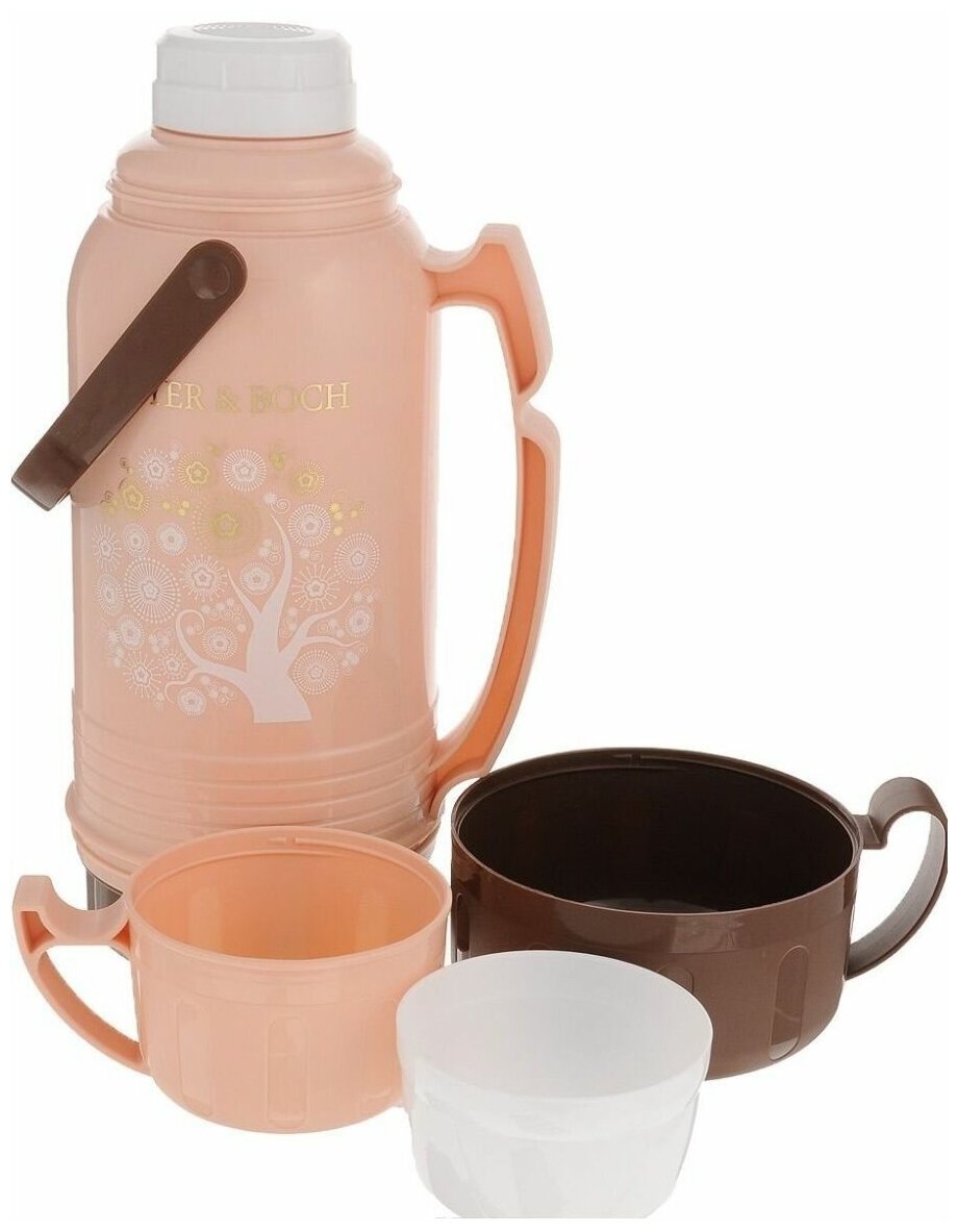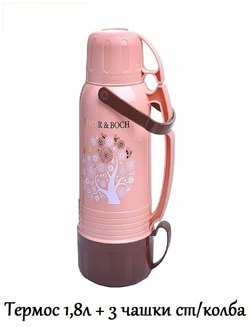 Термос MAYER&BOCH с цветным пластиковым корпусом и стеклянной внутренней колбой, является самым востребованным среди покупателей. По своим теплообменным характеристикам термос со стеклянной колбой не уступает термосам со стальными колбами, но благодаря свойствам стекла, в него можно наливать напитки с сильными, устойчивыми ароматами. Термос оснащен двумя удобными ручками, одна из которых предназначена для его переноски. Завинчивающаяся герметичная крышка предохраняет от проливаний. В комплекте с термосом идут 3 пластиковые кружки. Термос способен сохранять необходимую температуру до 24-х часов. Легко и просто моется. Термос MAYER&BOCH пригодится в любой ситуации: будь то поход, поездка или просто чаепитие.