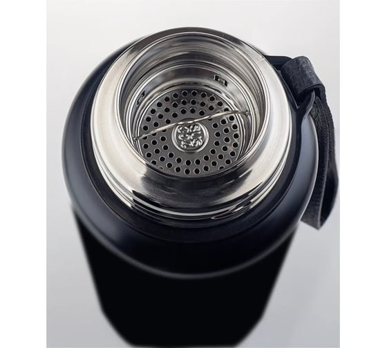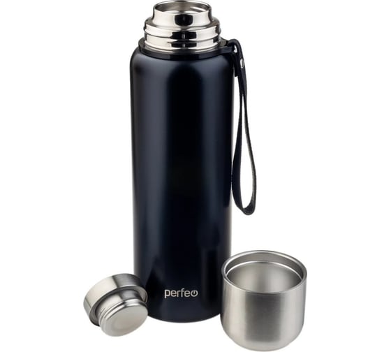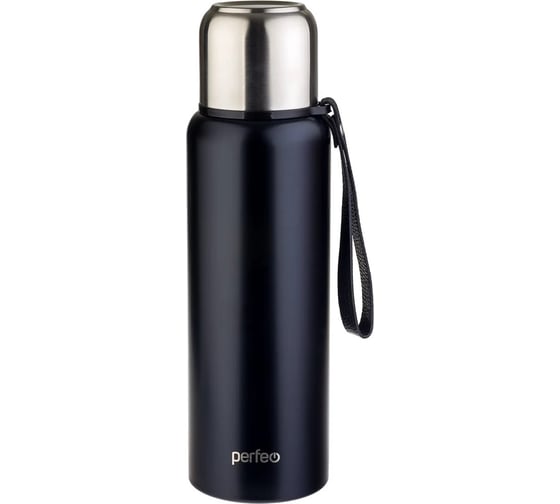 Термос для напитков Perfeo с глухой пробкой, ситечком, ремешком, 1 л, черный 30015999 имеет двойные стенки колбы, которые сохранят напитки теплыми или холодными длительное время.