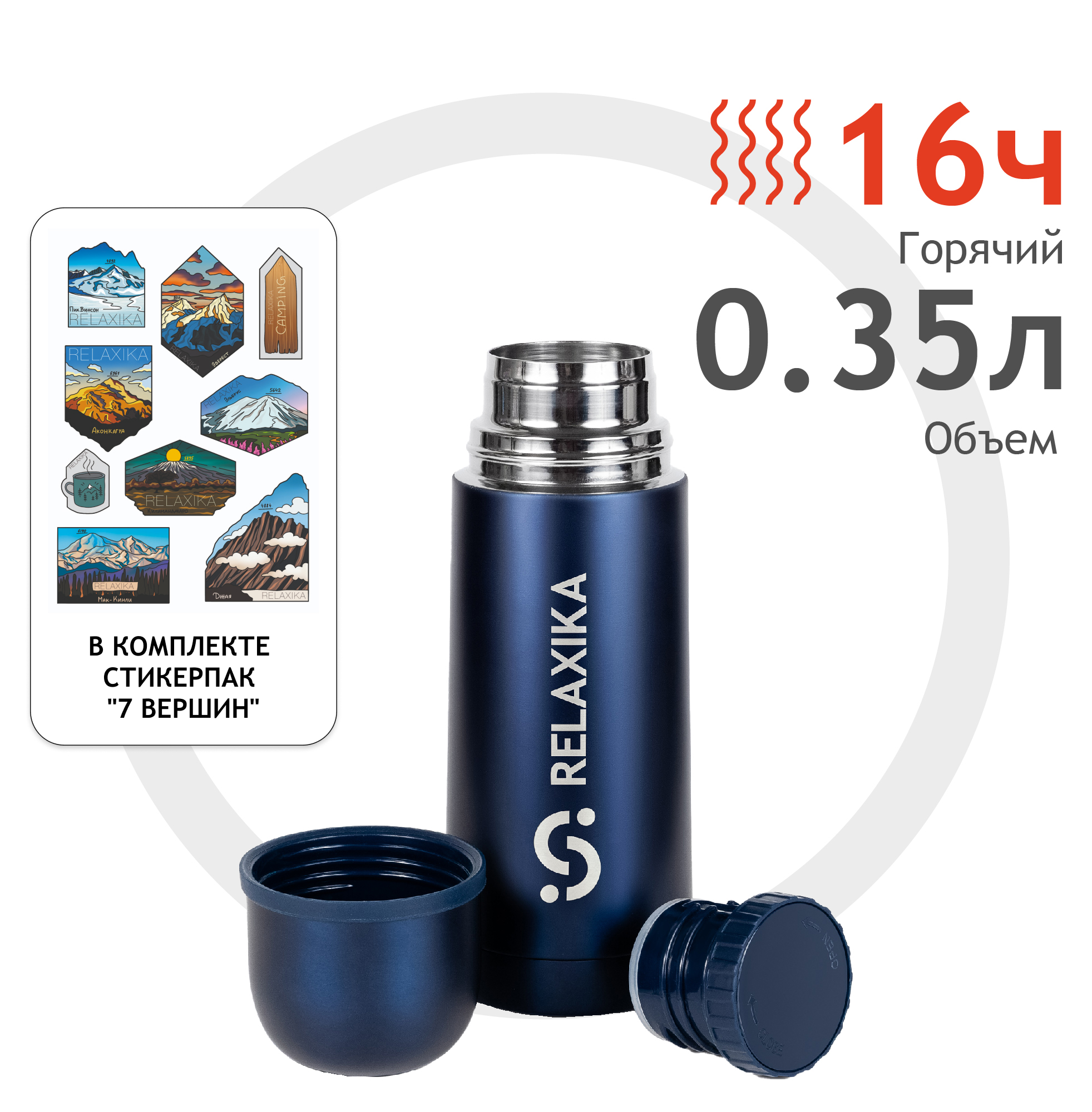 Термос Relaxika R101.350.3 темно-синий стикерпак 7 вершин