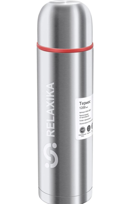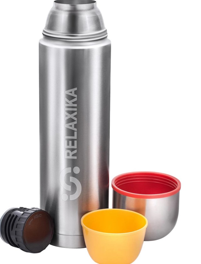 Классический термос Relaxika с двумя чашками и высокими показателями удержания температуры напитка для походов, путешествий, спорта и ежедневного использования. Прочные двойные стенки из высококачественной нержавеющей стали 18/8 с вакуумной изоляцией гарантируют, что ваш напиток останется холодным в течение 40 часов и горячим до 34 часов. Этот материал не только прочен, но и гигиеничен, не выделяет никаких вредных для здоровья веществ. Ваши напитки сохраняет естественный вкус и не приобретут посторонний запах.
