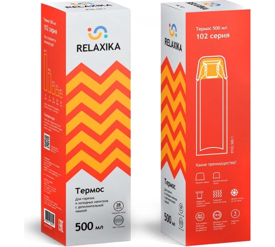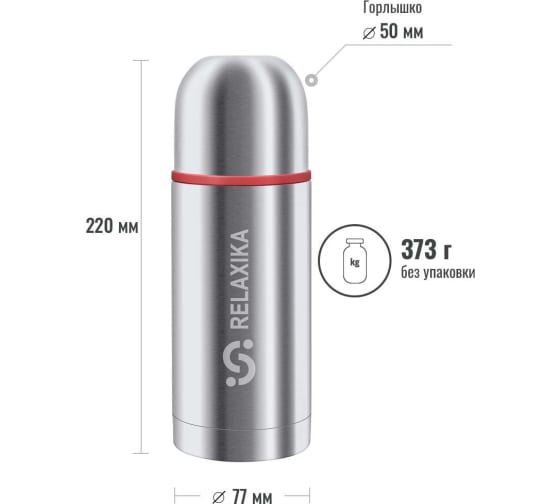 Термос Relaxika 102 0.5 л, в термочехле, стальной R102.500.1P выполнен из высококачественной нержавеющей стали и пищевого пластика. Его можно брать с собой на прогулку, тренировку или в школу, поездки на дачу или на работу.