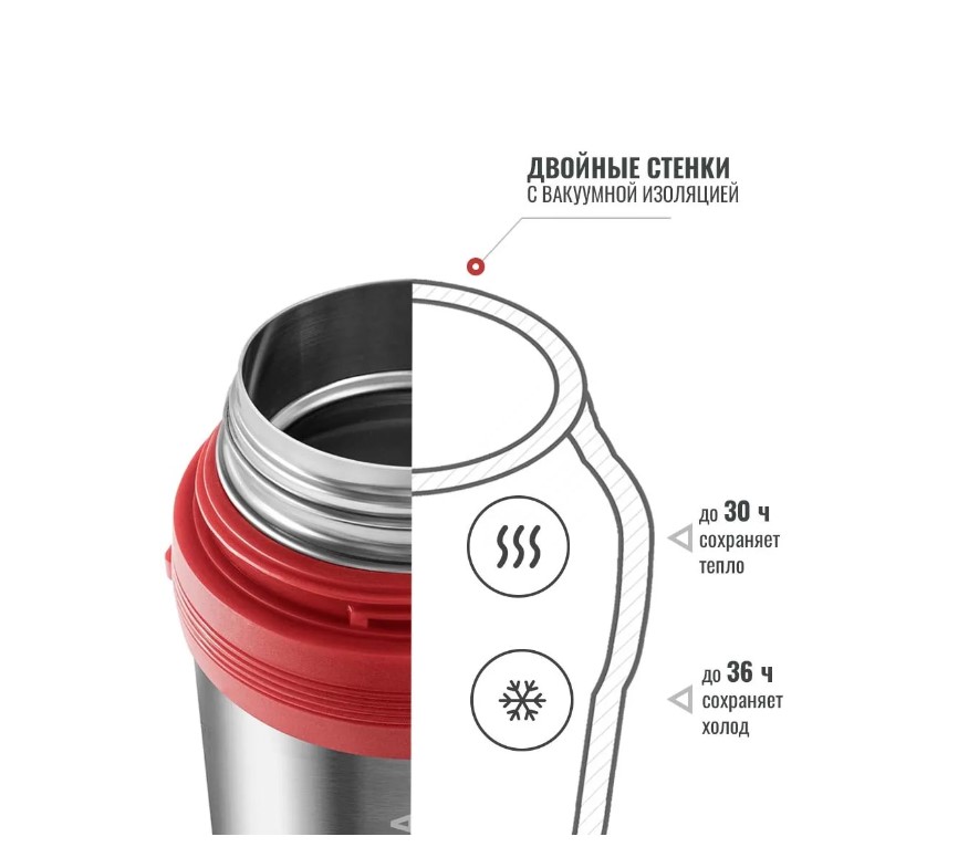 Металлический универсальный термос 1,2 литра Relaxika выполнен из высококачественной нержавеющей стали и пищевого пластика. В отличии от термоса со стеклянной колбой, термос из нержавеющей стали устойчив к ударам и повреждениям и легок в эксплуатации, а отсутствие в конструкции ситечка делает использование более гигиеничным. Термос будет особенно полезен во время отдыха на природе, в качестве посуды. Его по достоинству оценят любители туризма и походов, он станет центральным элементом походной кухни (рыболовного лагеря). Также термос 1,2 литра будет особенно полезен охотникам и рыболовам. Термос трансформируется в питьевой за счет двойной пробки, благодаря чему подойдет для похода на тренировку или для поездки на дачу или на работу. Пробка имеет предельно надежную конструкцию и надежно защитит ваш напиток от протекания. Удержание температуры: тепло - до 30 часов, холод - до 36 часов.