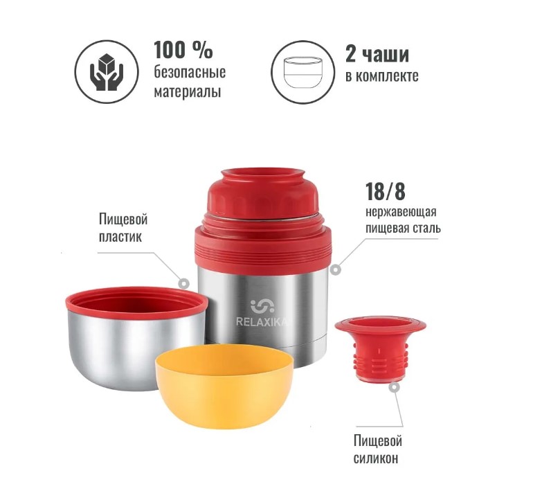 Металлический универсальный термос 0,5 литра Relaxika выполнен из высококачественной нержавеющей стали и пищевого пластика. Данный термос - это компактная версия термоса 1 литр. В отличии от термоса со стеклянной колбой, термос из нержавеющей стали устойчив к ударам и повреждениям и легок в эксплуатации, а отсутствие в конструкции ситечка делает использование более гигиеничным. Термос будет особенно полезен во время отдыха на природе, в качестве посуды. Его по достоинству оценят любители туризма и походов, он станет центральным элементом походной кухни (рыболовного лагеря). Также термос 0,5 литра будет особенно полезен охотникам и рыболовам. Термос трансформируется в питьевой за счет двойной пробки, благодаря чему подойдет для похода на тренировку или в школу, поездки на дачу или на работу. Компактный размер и легкий вес делает термос возможным для использования даже ребенком. Удержание температуры: тепло - до 22 часов, холод - до 28 часов.