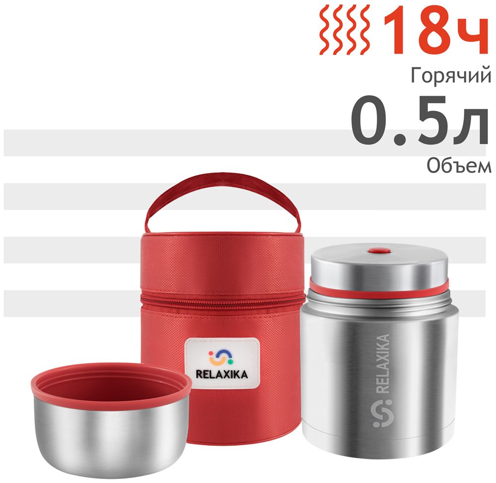 Термос для еды Relaxika 301 с широким горлом и термочехлом. Высокие показатели удержания температуры позволяют обедать горячими супами и вторыми блюдами в дороге и на отдыхе, на учёбе и на работе. Прочные двойные стенки из высококачественной пищевой нержавеющей стали 18/8 с вакуумной изоляцией гарантируют, что ваш напиток или блюдо останется холодным в течение 24 часов и горячим до 18 часов. Материалы: 18/8 нержавеющая пищевая сталь, пищевой пластик, пищевой силикон, BPA-free.