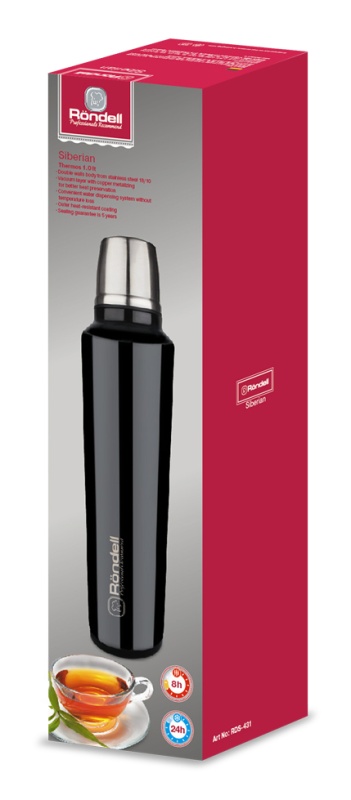 Представляем стильный черный термос RDS-431 Siberian вместимостью 1 л, выполненный из стали. Данный материал изготовления изделия не взаимодействует с продуктами, не изменяет вкус напитков.