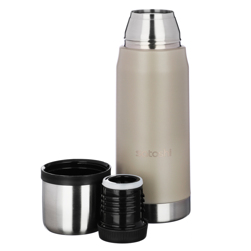 Термос SATOSHI Монблан объемом 0,5 л с двойными стенками корпуса из нержавеющей стали высокого качества 18/10 станет практичным спутником во время отдыха на природе и в поездках. Материал устойчив к механическим повреждениям, благодаря чему термос удобно брать в туристические походы. Нержавеющая сталь хорошо удерживает тепло, не меняет вкус и аромат напитков. Герметическая крышка надежно удерживает тепло внутри. Предназначен для напитков.