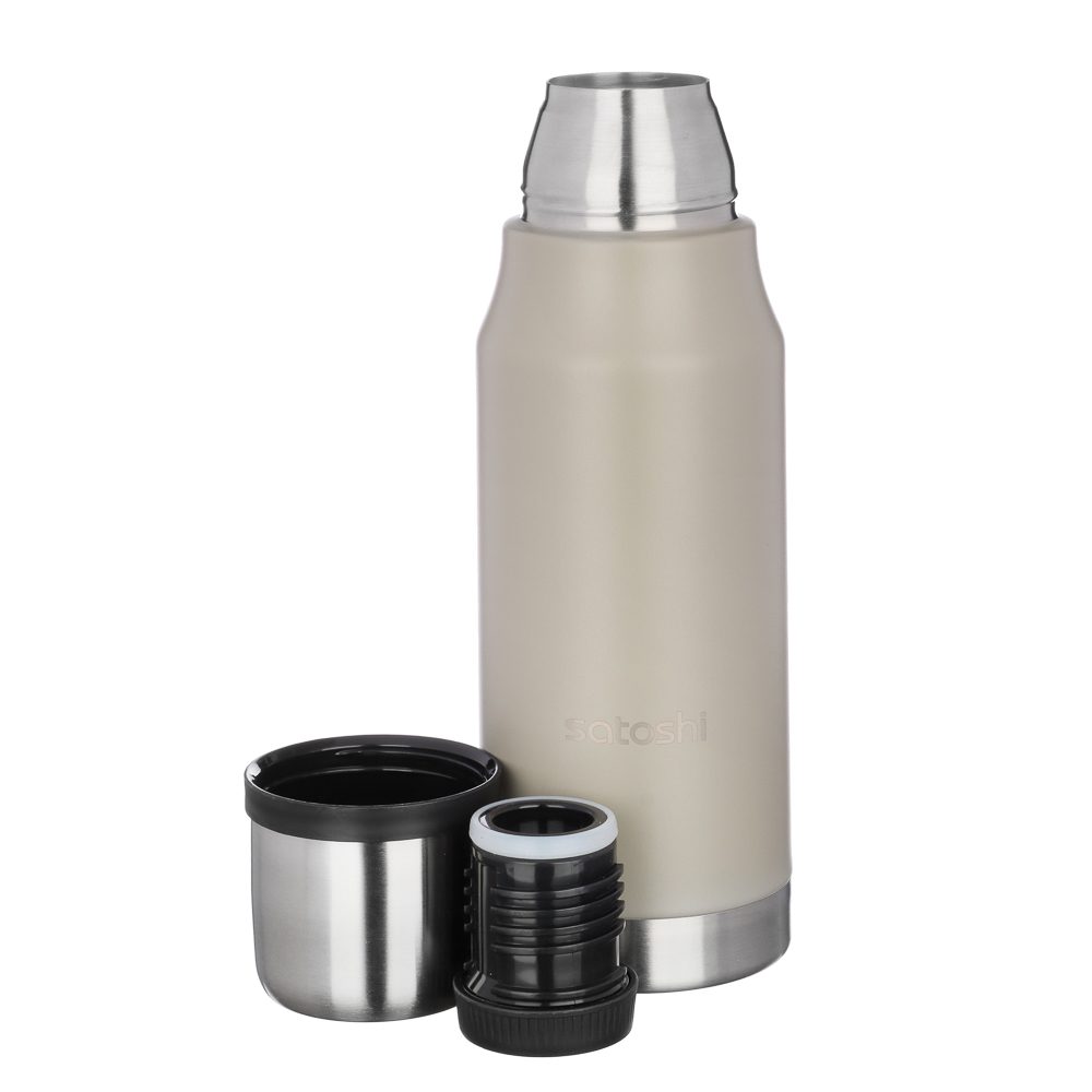 Термос SATOSHI Монблан объемом 0,75 л с двойными стенками корпуса из нержавеющей стали высокого качества 18/10 станет практичным спутником во время отдыха на природе и в поездках. Материал устойчив к механическим повреждениям, благодаря чему термос удобно брать в туристические походы. Нержавеющая сталь хорошо удерживает тепло, не меняет вкус и аромат напитков. Герметическая крышка надежно удерживает тепло внутри. Предназначен для напитков.