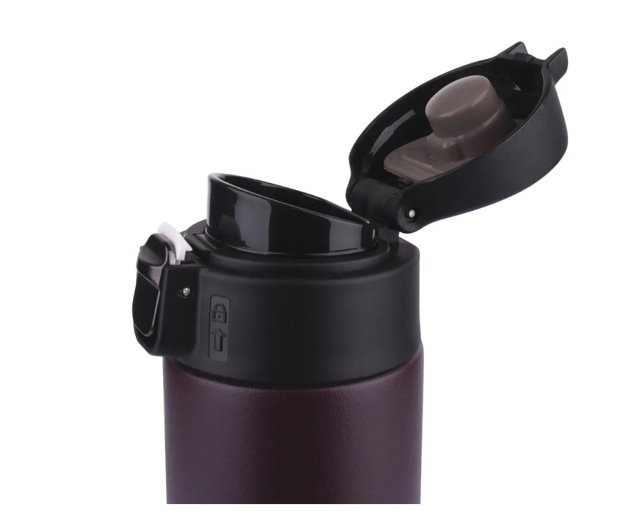 Кнопка блокировки крышки предотвращает открытие крышки, протекание и расплескивание. Герметичная крышка с силиконовой вставкой минимизирует потерю тепла. Диаметр горлышка термоса: 5 см. Высота - 26 см. Диаметр дна - 6 см.Удобно использовать одной рукой, подойдет для подстаканника автомобиля, можно положить в рюкзак или сумку, взять на прогулку. Сохраняет как горячие, так и холодные напитки.