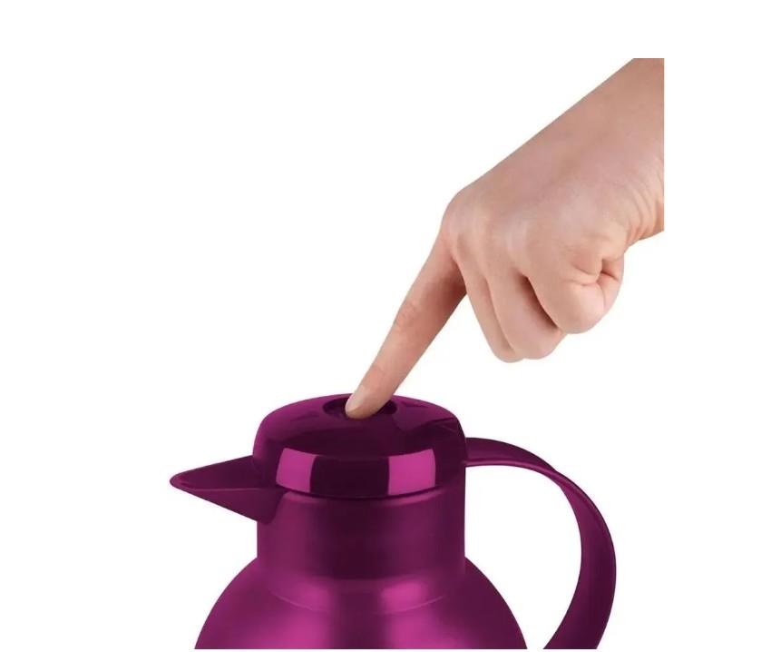 Термос TEFAL K3037312 имеет яркий глубокий малиновый цвет с серебристым отсветом. Термос сделан в виде кувшина. Он безусловно украсит ваш стол. Из него хочется напиться горячего чая с малиной или холодненького клюквенного морса. Тепло термос сохраняет в течение 12 ч, а холодным напиток остается целый день.
