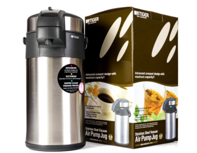 Термос с помпой Tiger — это пример заботы компании Tiger о больших семьях или любителях собираться большими компаниями дома, на природе, на даче и устраивать “чаепитие” с вкусняшками. Если большая компания собирается у кого-то дома, то хозяевам вечеринки не придется отвлекаться от общения с друзьями, на то, чтобы в очередной раз позаботиться о новой порции кипятка для заварки чая. Вместительный термос Tiger способен сохранять длительное время температуру воды или напитка, практически на уровне кипятка! Каждый желающий выпить чашку чая вполне сможет самостоятельно за собой поухаживать. Tiger — очень полезная вещь в “офисных кухнях”, куда сотрудники заглядывают по несколько раз в день, чтобы выпить чашечку чая или кофе, при этом имея возможность “переключиться”, сделать “перезагрузку” своего внимания с “рабочих” вопросов на приятное неформальное общение с сослуживцами, давая “отдых” своим глазам от компьютерной техники и т.д. В больших семья термос Tiger помогает не только напоить всех чаем в течение дня, но и позволяет экономить электроэнергию — никто не включает без конца полупустой электрочайник. Вскипятили утром воду — залили в термос и хватит кипятка на целый день! С такими свойствами и размерами аналогов на рынке подобных товаров нет! Термос Tiger обладает превосходными свойства сохранения температуры напитка, имеет достойный внешний вид и качественную упаковку, поэтому он идеально подойдет для хорошего подарка друзьям и близким людям. Термосы TIGER — это современный дизайн и уникальные японские технологии, качественные материалы и сборка, долговечность, полезность и практичность изделий. Они доставляют радость своим пользователям!