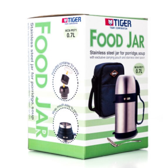 Термос Tiger MCW-P071 созданы для тех, кто заботится о своем здоровье и предпочитает домашнюю еду. Эта модель – полноценный набор для обеда вне дома. В комплект входит глубокая крышка, которая при необходимости послужит тарелкой; контейнер для соуса; ложка, которая крепится на боку; сумка с наплечным ремнем для переноски.