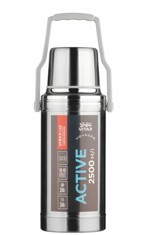 Вакуумный термос Vitax Voyager VX-3407 объемом 2500 мл. - изготовлен из высококачественной нержавеющей стали с двойными колбами. Надёжная клапанная система открывания позволяет надолго сохранять тепло. Термос имеет две рукоятки, что делает его удобным и эргономичным.