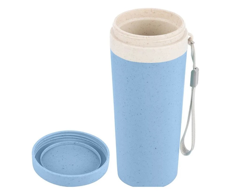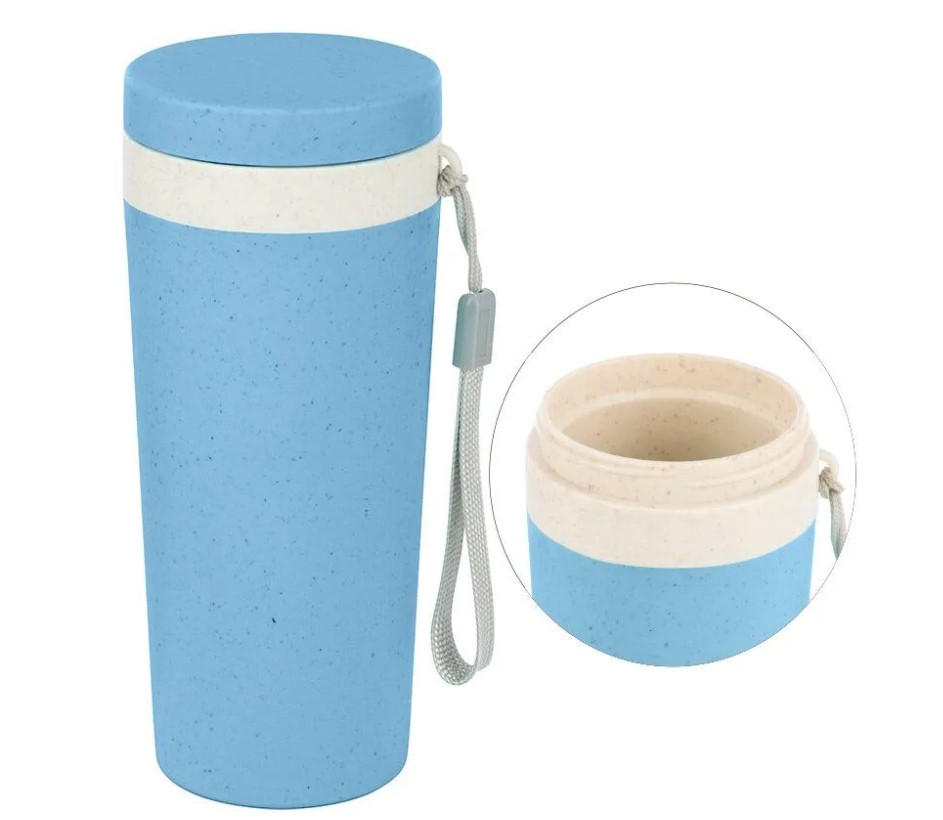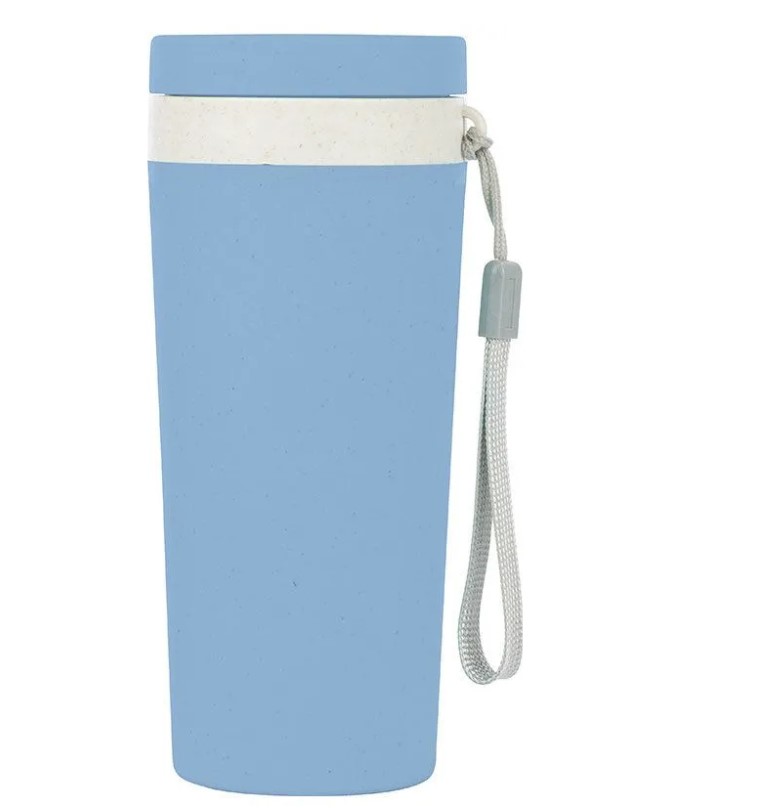 Стакан изготовлен из высококачественных материалов, безопасных для здоровья человека. Изделие имеет съемную крышку, которая защищает напиток от пыли и посторонних запахов. Легкий вес и небольшой объем позволят взять стакан с собой в дорогу, на дачу или пикник. Снабжен ремешком для переноски. Стакан с крышкой предназначен для прохладительных напитков. Материал: полимерный сплав с растительным волокном (пищевой пластик PP+ пшеничное волокно), полиэстер.