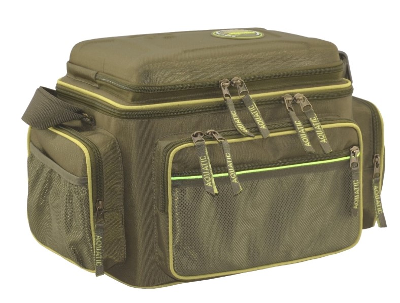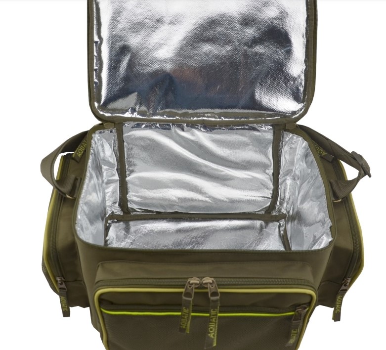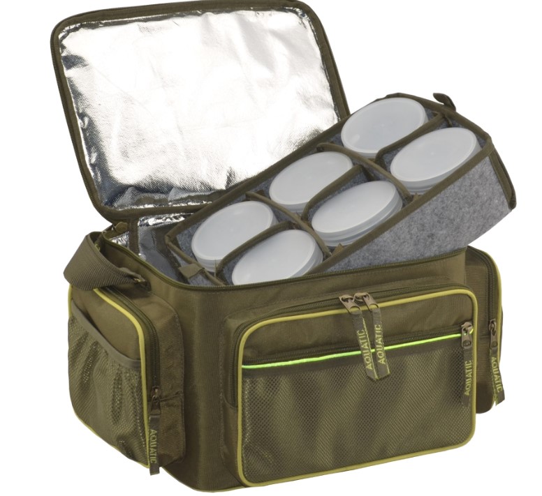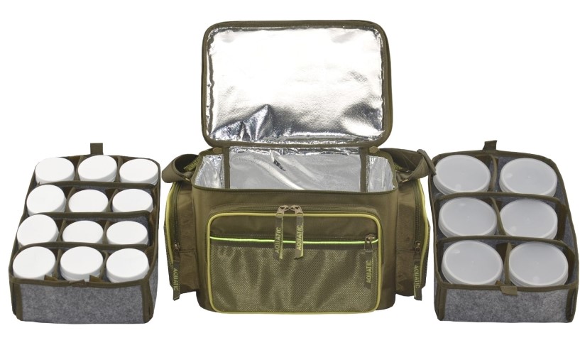 Термо-сумка Aquatic С-44 с банками для хранения дипов и насадок. Термо-сумка полностью выполнена из высококачественного износостойкого нейлона и имеет прорезиненное дно, благодаря чему практически не промокает и легко отмывается от загрязнений. Для максимально длительного хранения ваших дипов и насадок весь внутренний объем термо-сумки покрыт технологичным термоизоляционным материалом. Термо-сумка укомплектована 6-ю банками диаметром 89 мм и высотой 80 мм и 12-ю банками диаметром 58 мм и высотой 100 мм, размещенными в двух специальных съемных отделениях с мягкими перегородками на липучках, которые позволяют подгонять размеры ячеек для банок другого объема. Верхняя крышка на молнии имеет вместительный формованный карман, в котором можно хранить рыболовную коробку, или другие полезные аксессуары. Спереди и по бокам расположены три объемных кармана на молнии с накладными карманами из сетки для различных рыболовных принадлежностей. Для удобства транспортировки термо-сумка имеет регулируемый по высоте плечевой ремень из прочной стропы.