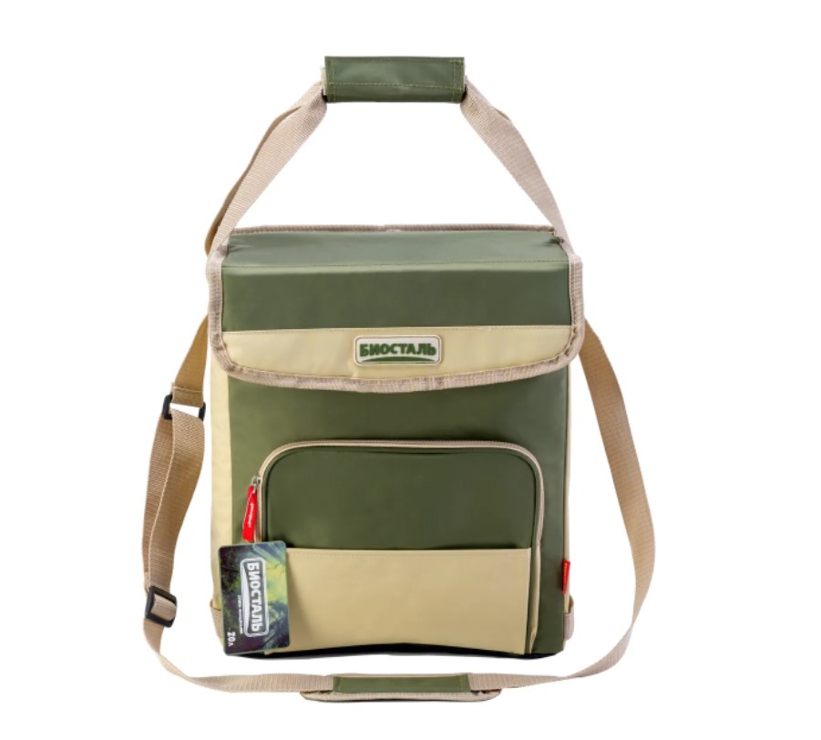 Сумка-холодильник Биосталь Кемпинг в цвете «Зелёная тайга» создана специально для того, чтобы вы могли максимально надежно сохранять и перевозить продукты и напитки, на пикнике и дома, на рыбалке и на работе. На даче и по пути из магазина. Сумка имеет фольгированный внутренний слой PEVA, который является дополнительным отражающим слоем и термоизоляцией, легко моется и защищает сумку от протекания. Сумка-холодильник Биосталь Кемпинг оснащена дополнительными карманами, как внутри, так и снаружи. Внутренний карман позволяет разместить в нём аккумулятор холода Биосталь или что-то, к чему вам нужен быстрый доступ. Наружные карманы c замком созданы для хранения мелких важных предметов: будь то ключи, документы или салфетки. Кроме того, мы позаботились о том, чтобы сумку-холодильник Биосталь Кемпинг было удобно носить: маленькие ручки фиксируются мягкой манжетой, а основной ремень регулируется по длине и имеет смягчающую накладку обеспечивающей комфортное распределение нагрузки на тело. Все ручки дополнительно прошиты у основания, чтобы исключить любую возможность разрыва. Благодаря продуманной конструкции, сумка легко складывается для хранения. В разложенном виде, даже пустая сумка превосходно держит форму. Внутренний объем сумки – 20 литров. Слой изоляции составляет: 6 мм. Время сохранения холода - 56 часов.