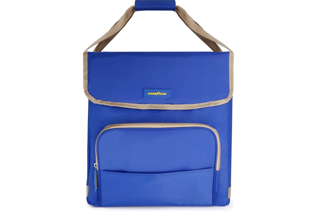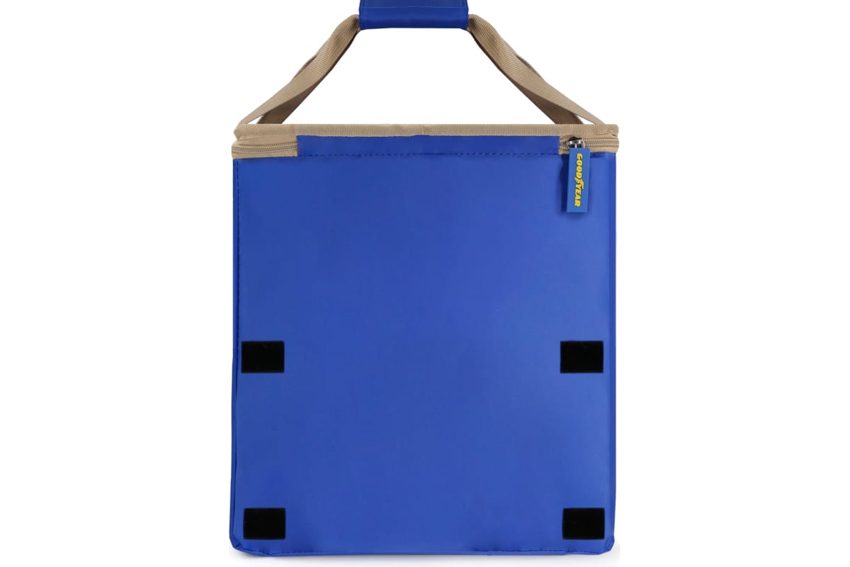 После использования сумку-холодильник Goodyear можно компактно сложить и зафиксировать с помощью липучек, в таком виде она не займет много места.