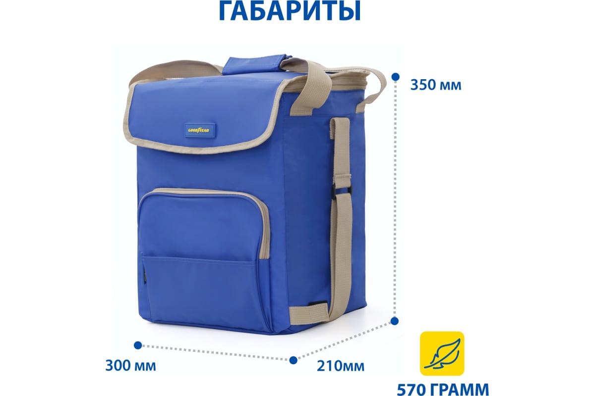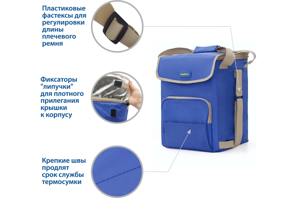 Термосумка Goodyear поддерживает определенную температуру внутри и сохраняет свежесть продуктов в течение долгого времени. Это незаменимый помощник при транспортировке продуктов, выездов на пикник и в путешествия, для рыбалки и туризма.