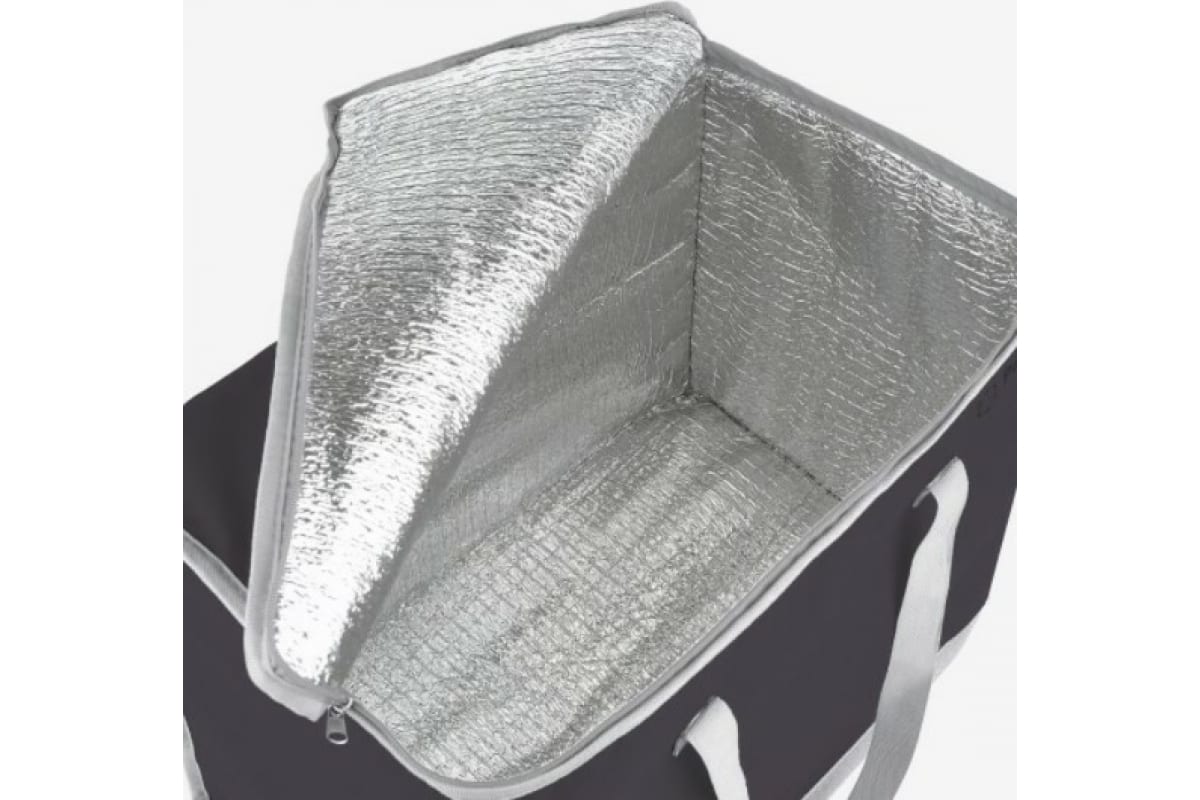 Снаружи термосумка выполнена из прочного, водоотталкивающего и износостойкого материала Oxford, пригодного для влажной чистки. Внутри покрыта вспененной теплоизоляцией с металлизированным покрытием.