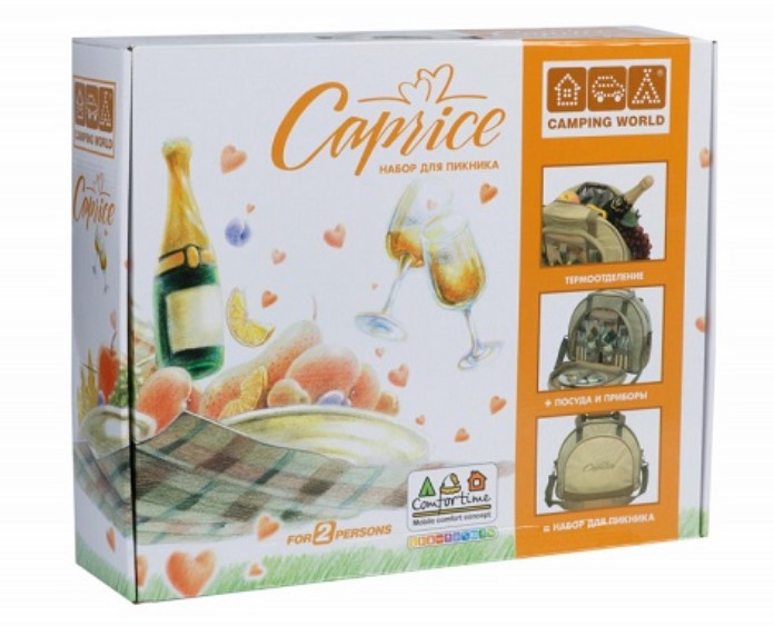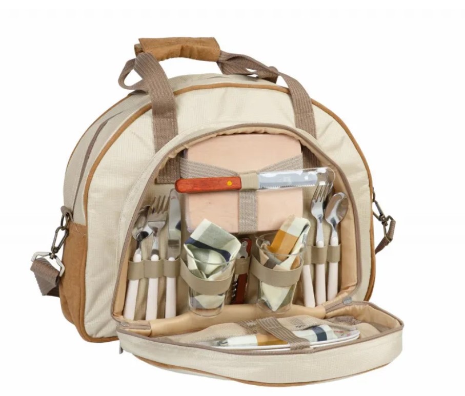 Набор для пикника CW Caprise в подарочной упаковке (на 2 персоны, цвет бежевый, романтический набор с посудой + изотермическое отделение, вес 2кг)