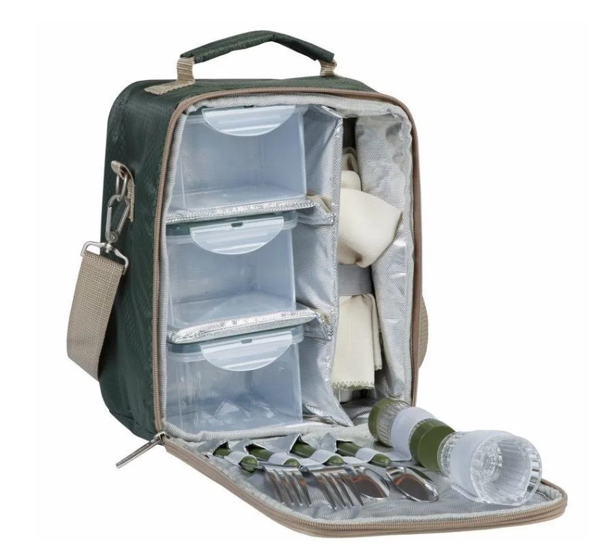 Набор для пикника CW River Lunch в подарочной упаковке (на 2 персоны, цвет зеленый, сумка-термос с набором посуды и термосом для напитков, вес 1250г)