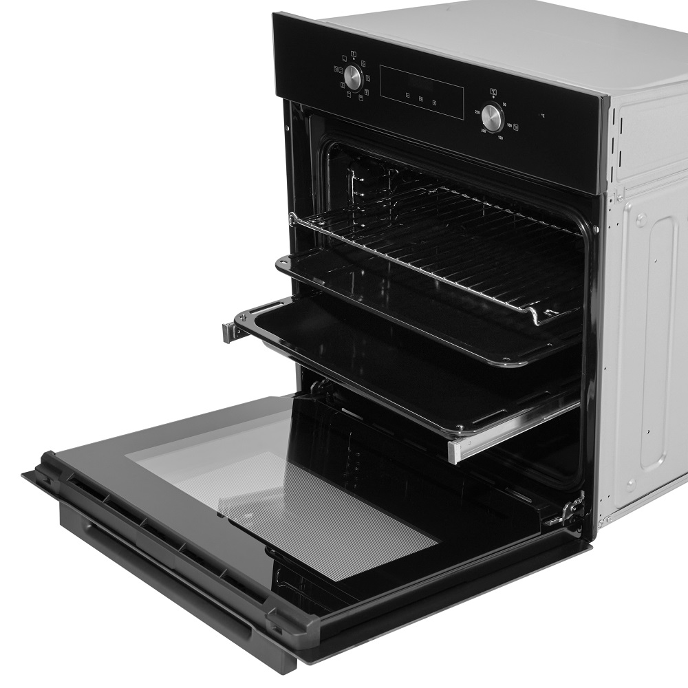 Особенности духового шкафа отложенный старт / цифровые часы с будильником / телескопические направляющие 1 уровня / хромированные направляющие / таймер автоматического отключения