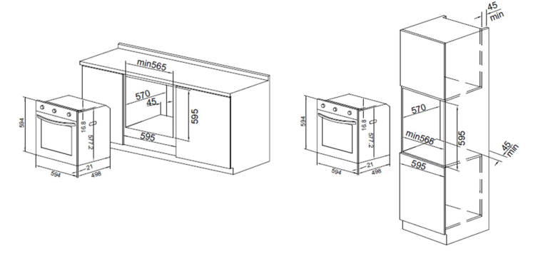 Габариты духового шкафа для встраивания