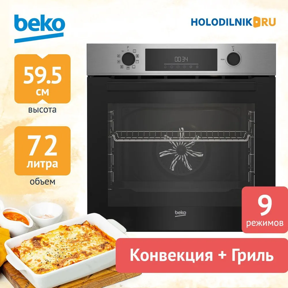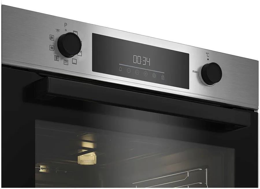 Особенности духовки, плиты: Дисплей, Полностью стеклянная внутренняя дверца, Хромированные направляющие, Встроенные часы