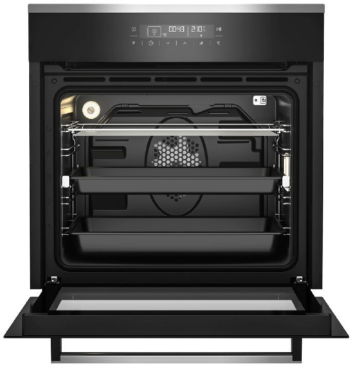 Режимы духовки Верхний и нижний нагрев, верхний и нижний нагрев+вентилятор, нагрев кольцевым элементом, 3D приготовление, пицца, гриль+вентилятор, гриль, малый гриль, медленное приготовление, нижний нагрев, поддержание тепла, разморозка.