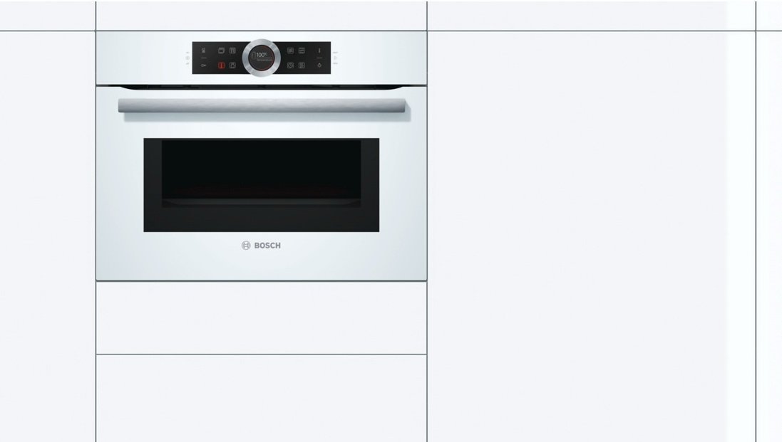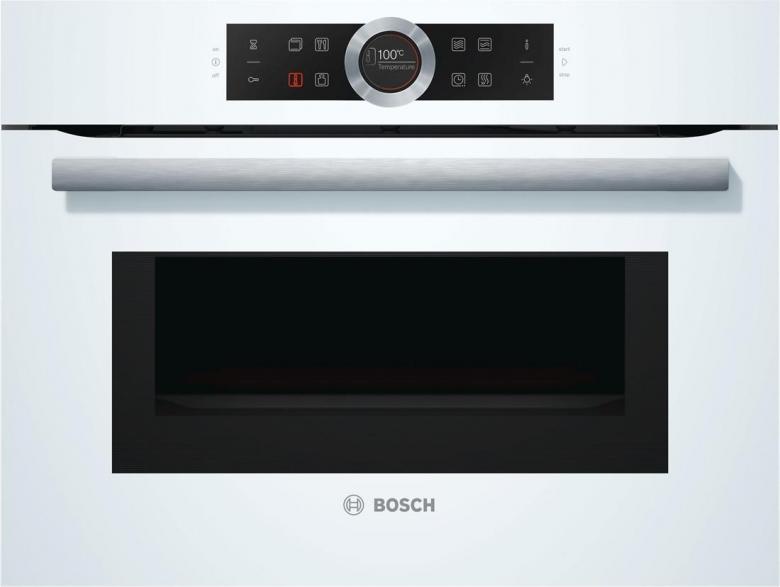 Компактный духовой шкаф Bosch сочетается по стилю с полноразмерными моделями серии 8, что позволяет создавать комбинации. Особенность шкафа в том, что воздействие горячего воздуха в режиме 4D сочетается с режимами гриля и микроволн. Выбор функций выполняется при помощи сенсорных кнопок на дисплее и поворотного регулятора ControlRing. Ключевые преимущества: Функция микроволн Мягкое открытие и закрытие дверцы, Интерактивный TFT-дисплей.