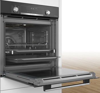 Дверца духового шкафа закрывается плавно и тихо благодаря амортизатору SoftMove.