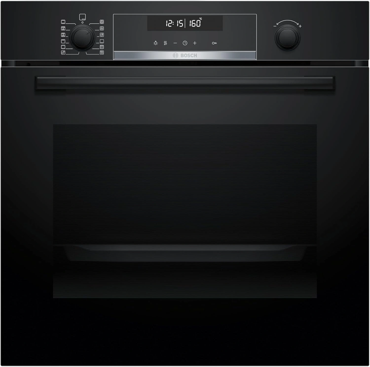 вентилятор охлаждения, дисплей, полностью стеклянная внутренняя поверхность дверцы духовки, телескопические направляющие, утапливаемые переключатели, электронный программатор