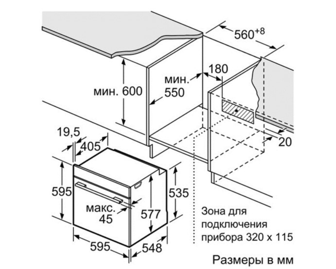 Размеры для встраивания (ВхШхГ) 585x560x550 мм