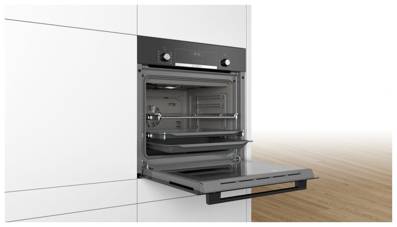 дополнительные режимы: 3D горячий воздух, горячий воздух gentle, режим для пиццы; система очистки боковых, задних и верхних стенок EcoClean Direct; доступ к блюдам на противнях благодаря плавно выдвигающимся телескопическим направляющим на 2 уровнях; дверца духовки с амортизатором SoftClose обеспечивает плавное открытие и закрытие дверцы; длина сетевого кабеля: 100 см, тип штепсельной вилки: вилка с заземлением; предохранители: 16A, напряжение: 220-240В; LCD-дисплей c индикацией белого цвета; многофункциональные часы EasyClock включают в себя бытовой таймер, таймер приготовления, установку окончания приготовления; электронные часы, звуковой таймер с отключением; вентилятор охлаждения, размеры ниши для встраивания 575-597x560-568x550 мм, вес без упаковки 35,235 кг